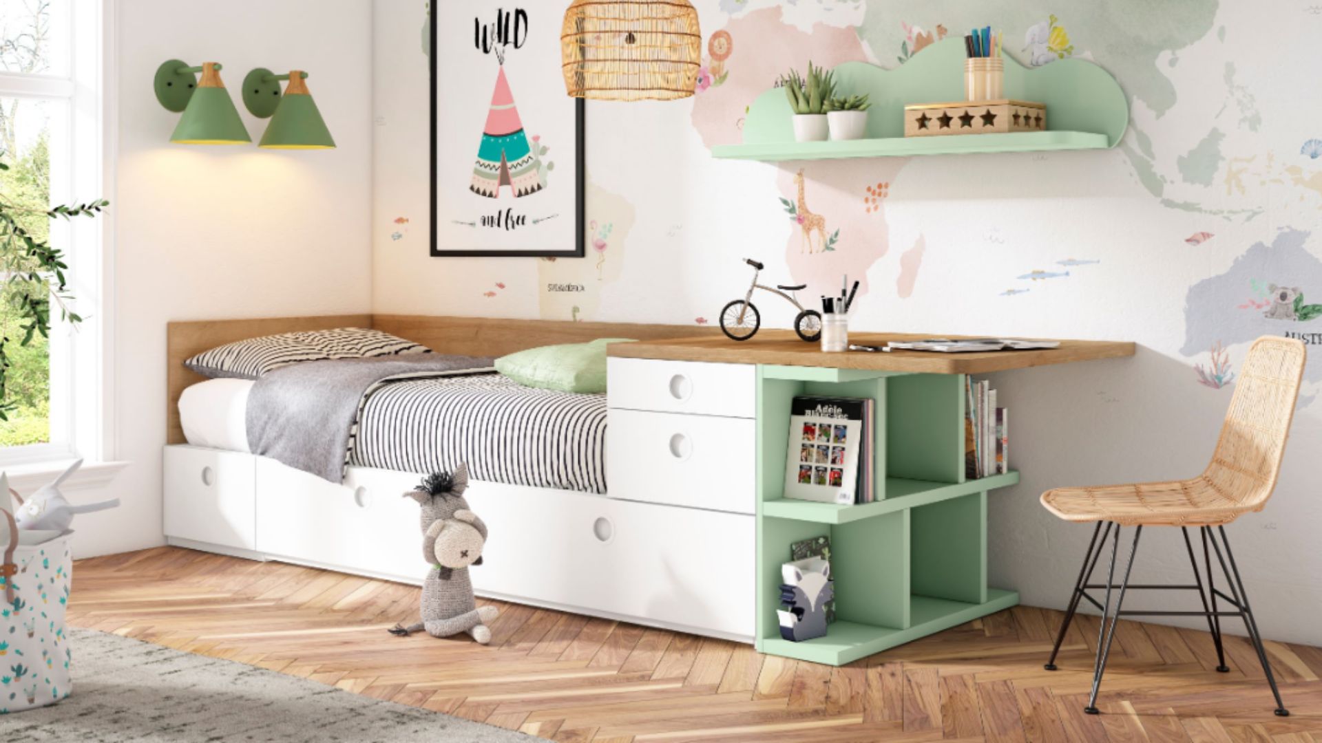 Espacios que crecen con ellos. Nuestros dormitorios infantiles y juveniles están diseñados para acompañar cada etapa, con muebles modulares que se adaptan a sus necesidades y estilos. Funcionalidad, color y diversión en un solo lugar.