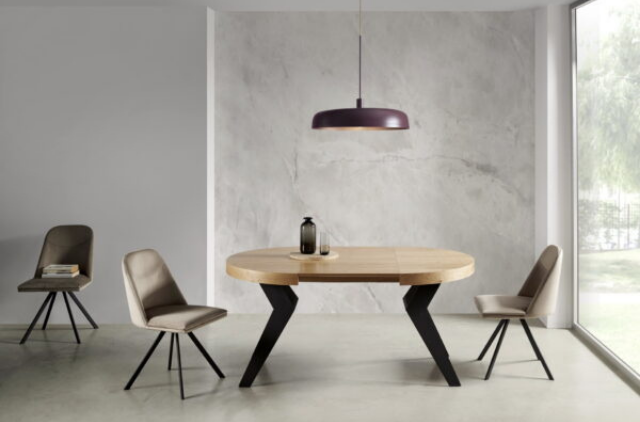 La altura de la mesa es de 76,5 cm, con una superficie útil de 100 o 120 cm.