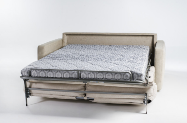 Somier metálico de malla electrosoldada unido con muelles al mecanismo y cinchas elásticas en la zona del asiento, para una correcta suspensión en ambas zonas.