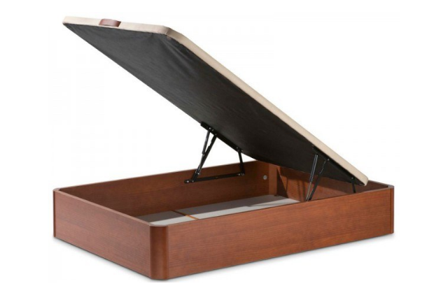 Canapé de madera con tapa abatible de estructura metálica y tapizado transpirable.