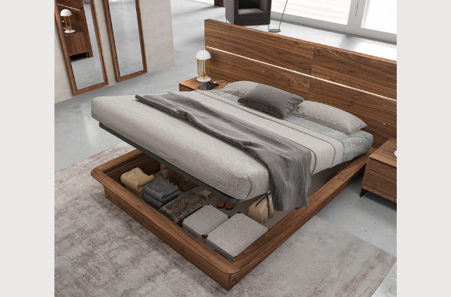 Opciones de la cama: base o cajón elevable para colchón de 150 cm.