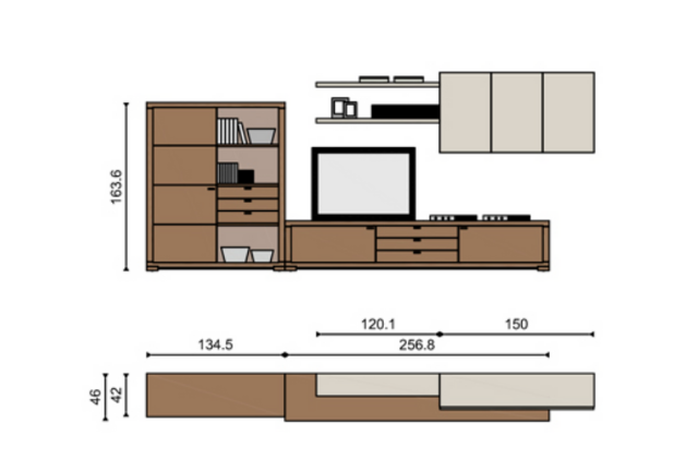 Modulo con puerta de madera izquierda 134,5x42x163,6cm.