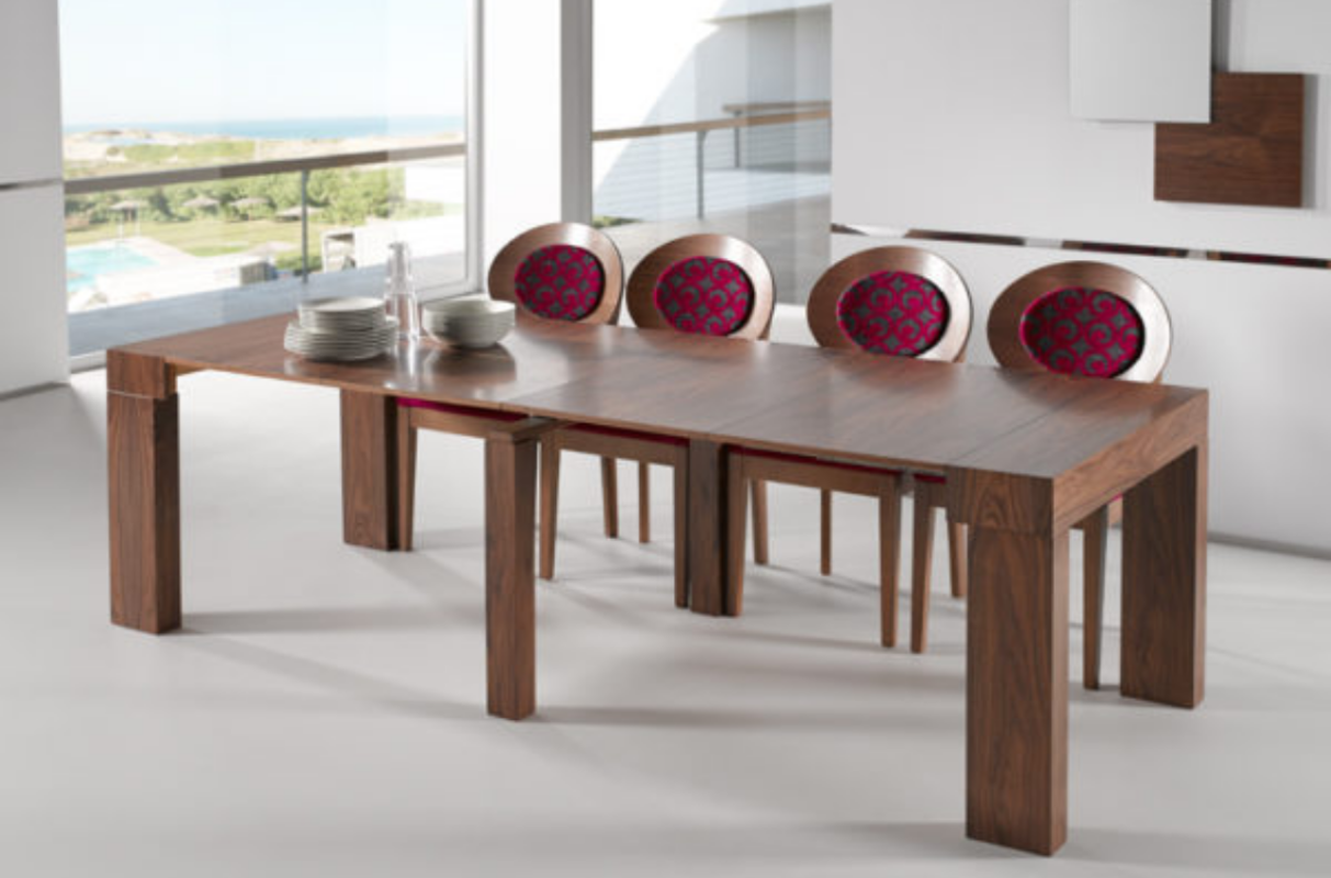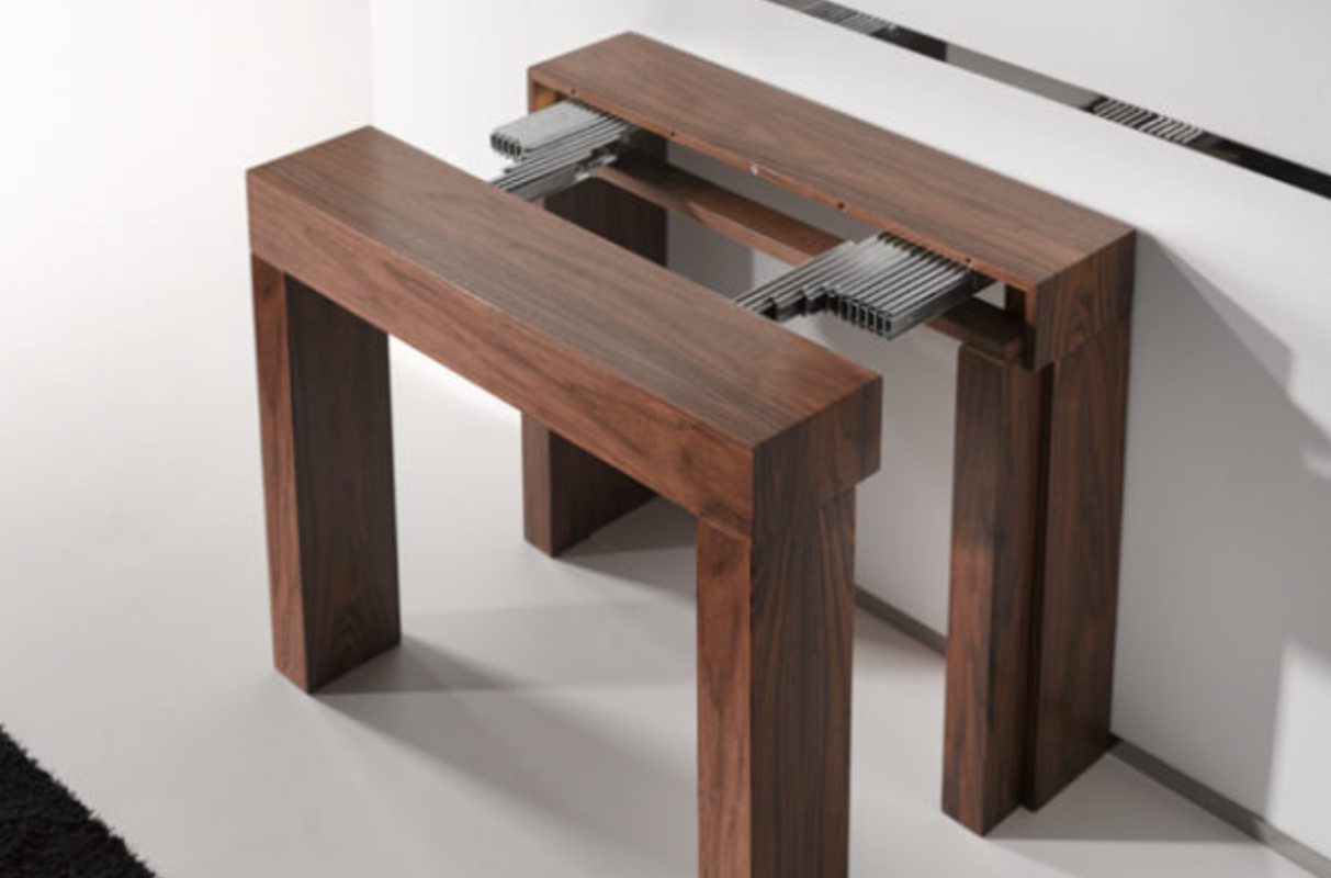 Consola convertible en mesa de comedor, su diseño es simple y discreto como sus medidas, esto permite ubicarla en cualquier espacio.