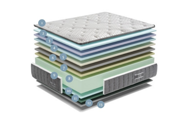 Viscoelástico y de alta resilencia HR, gracias al carbono y tejido biocerámico la temperatura se regula garantizando el descanso.