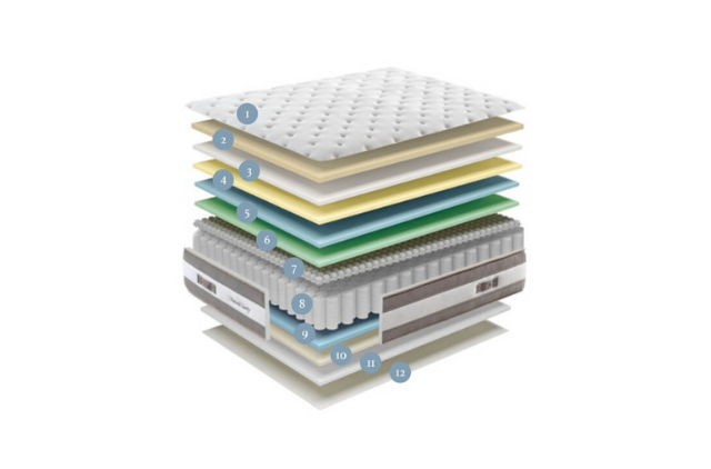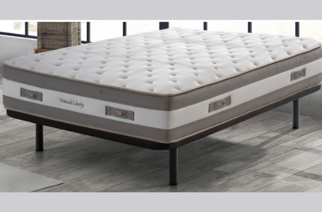 Colchón con doble núcleo de muelles ensacados y nano muelle ensacado, con acogida en látex 100% .